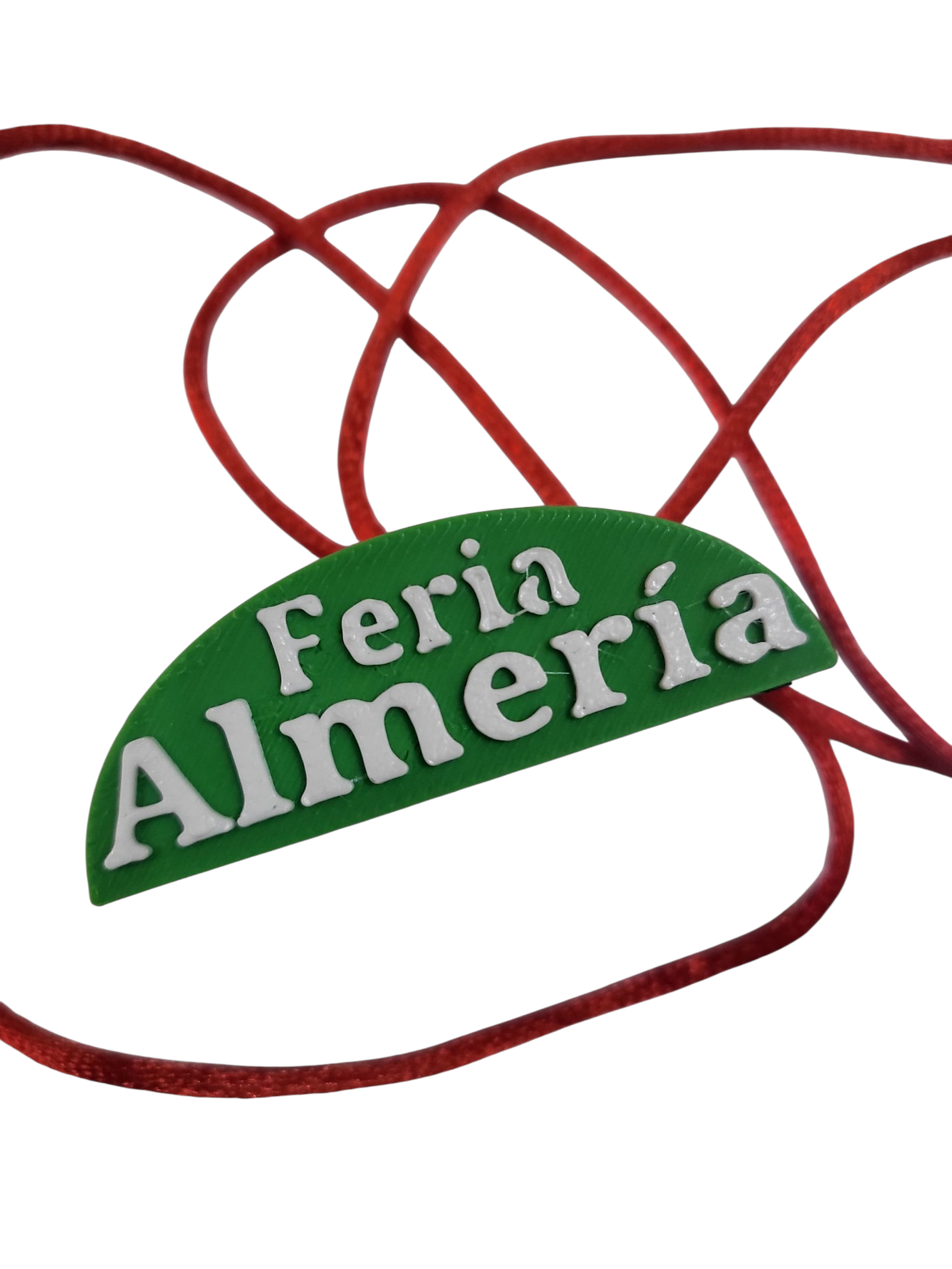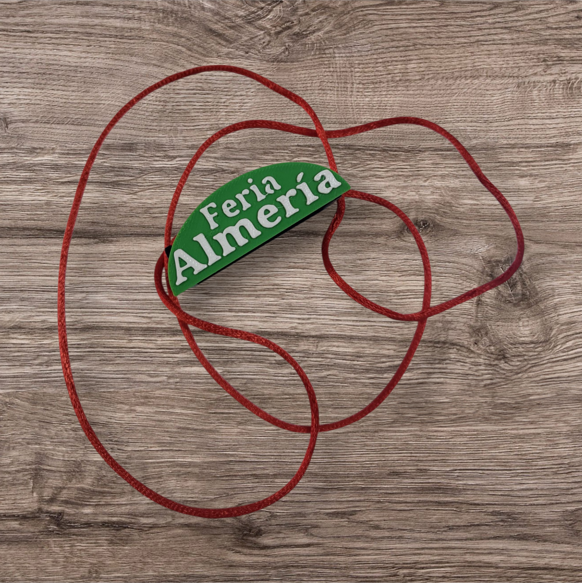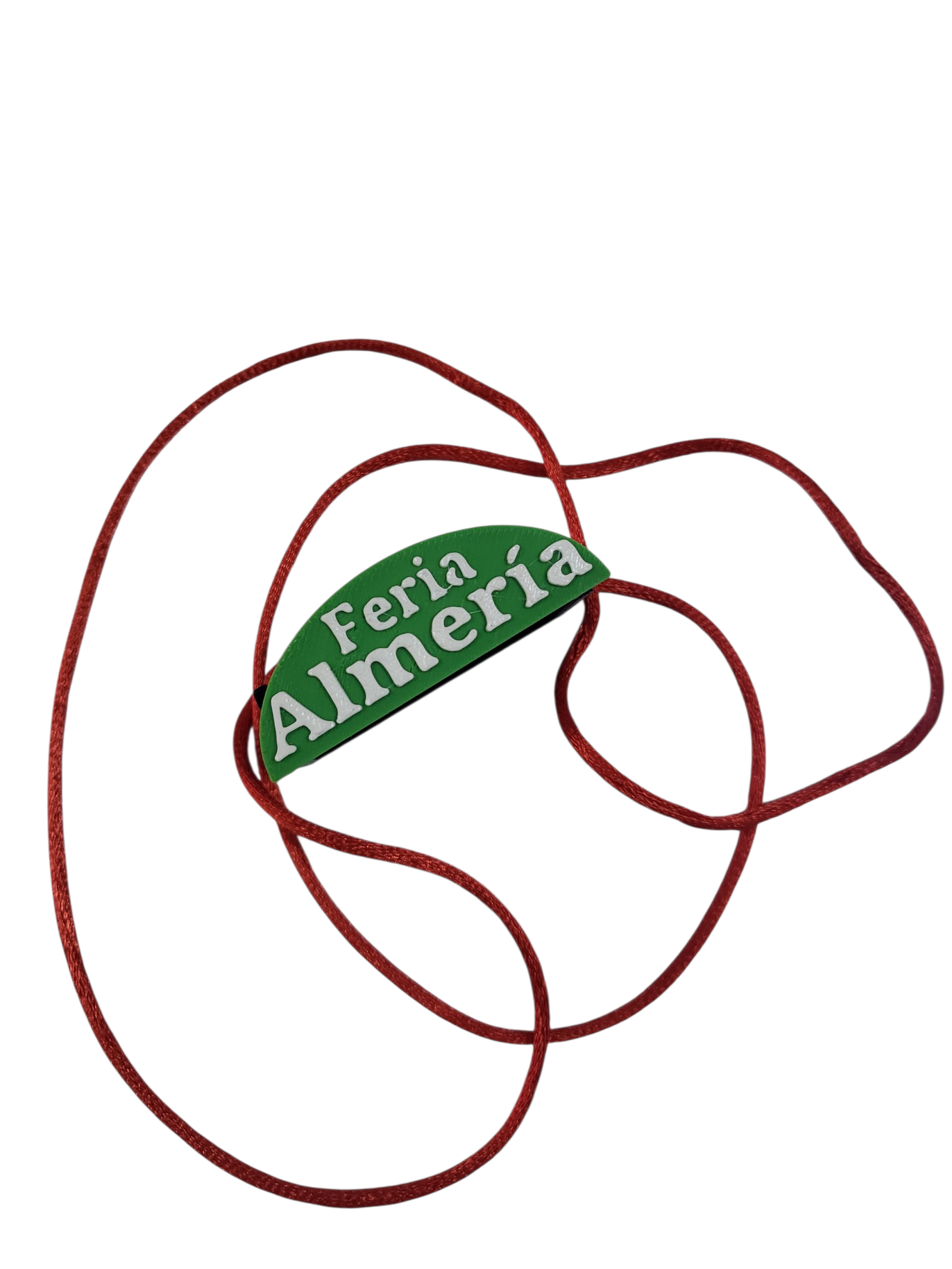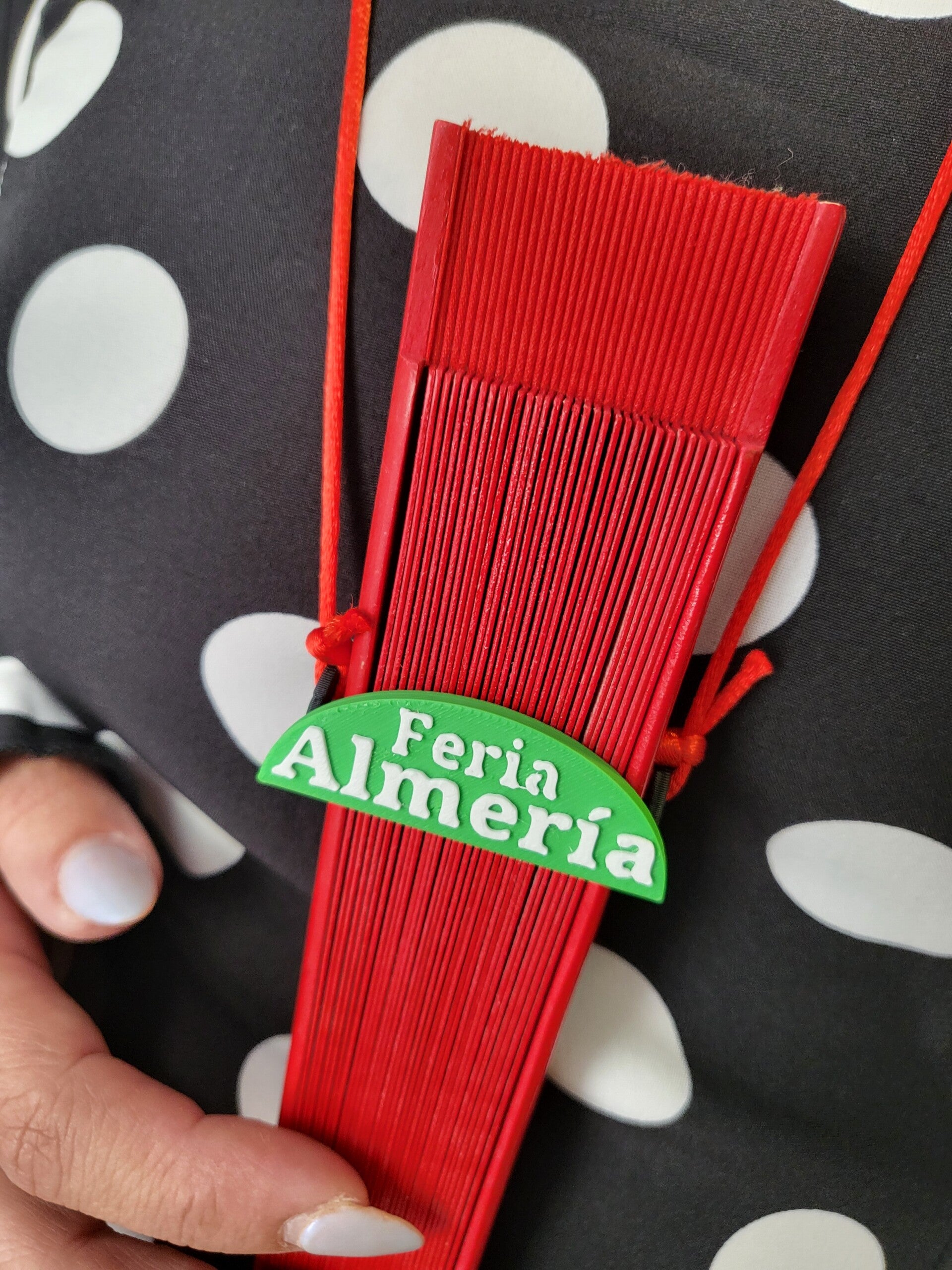 Porta abanico con el fondo verde, con letras en blanco y cordón rojo, fabricado en 3D, apto para todos los modelos de abanicos.