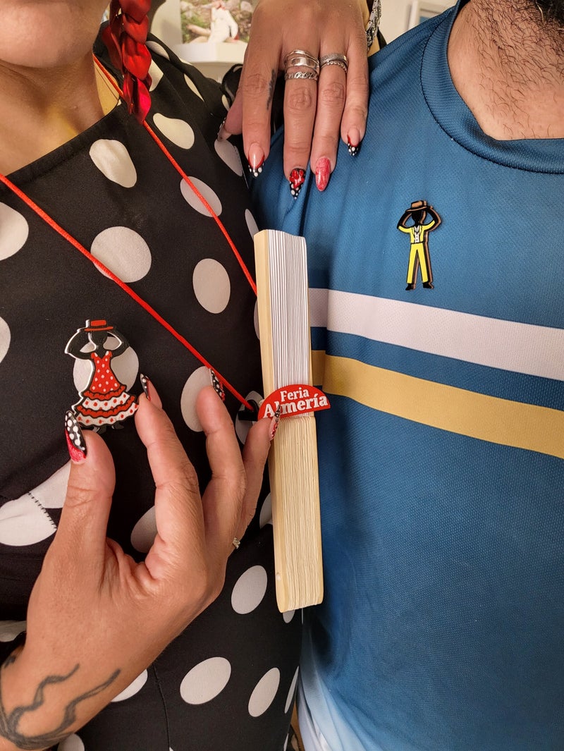 Pin en forma de abanico en color rojo con lunares blancos. Fabricado en 3D y broche metal en dorado.